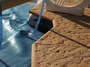 Poured concrete is a mixture of cement, sand and water. This mixture is placed into coping moulds that are in place around the pool area. There are many edging designs that are available to enhance and feature throughout your pool area.